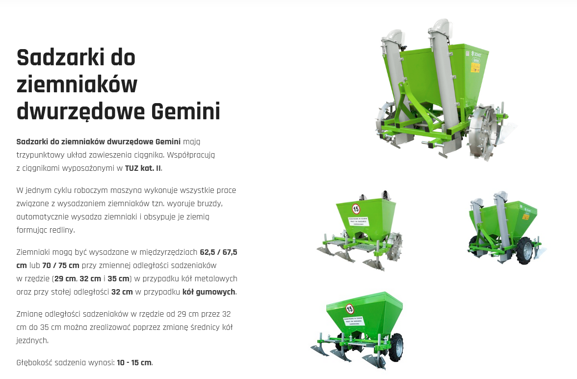 Sadzarka do ziemniaków 2 rzędowa GEMINI S339 / 67.5 -80 / + talerze obs + przyst